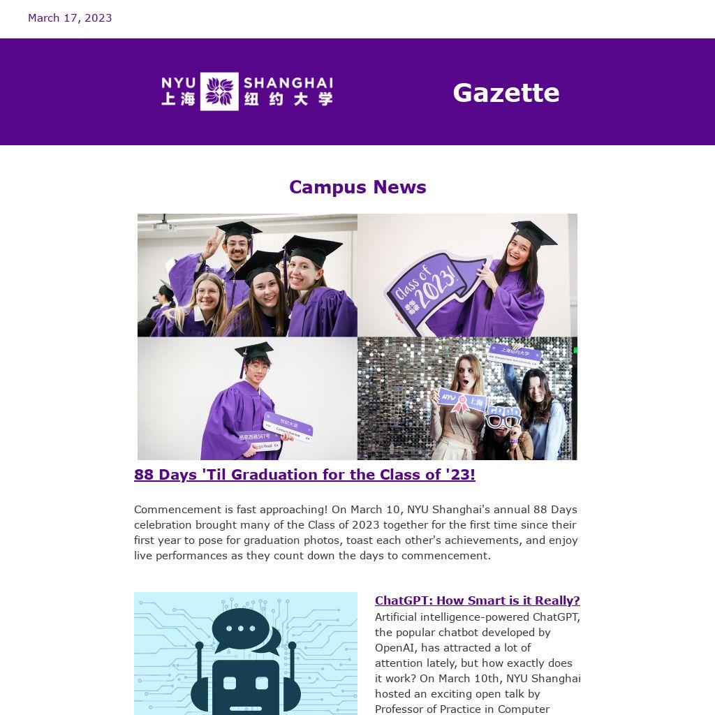 Commencement is fast approaching! On March 10, NYU Shanghai's annual 88 Days celebration brought many of the Class of 2023 together for the first time since their first year to pose for graduation photos, toast each other's achievements, and enjoy live performances as they count down the days to commencement.