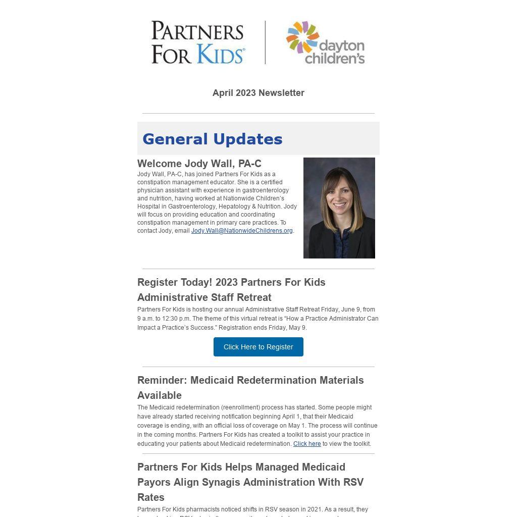 If you have questions regarding any of the information in this newsletter or suggestions regarding newsletter content that would be useful to your practice, please contact us at PFKProRelations@childrensdayton.org.