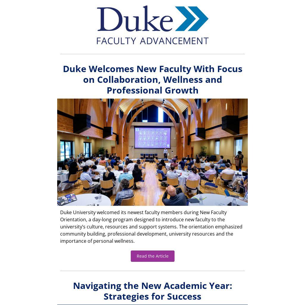 Duke Welcomes New Faculty With Focus on Collaboration, Wellness and Professional Growth