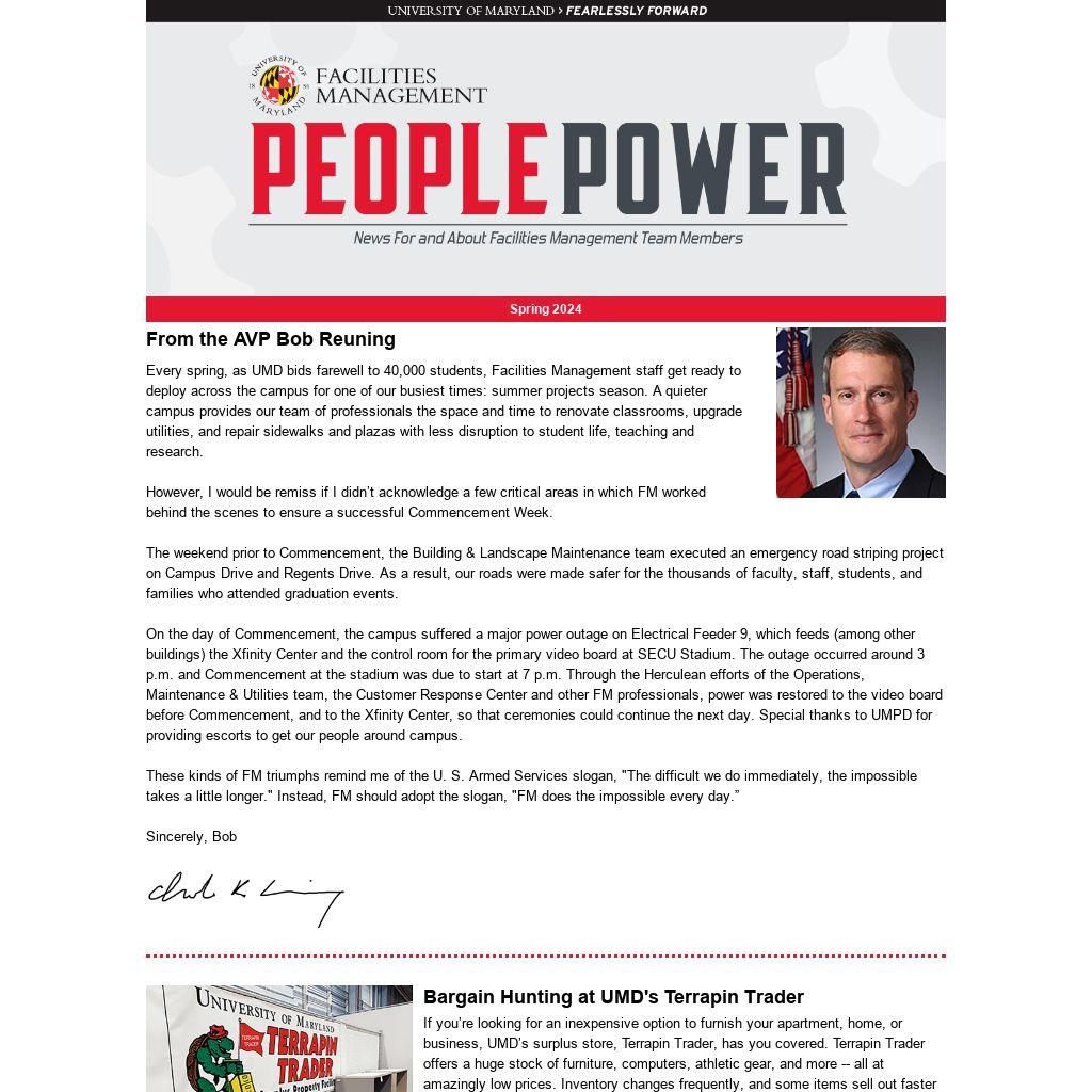 Share your story ideas! People Power is a newsletter for and about FM staff, so let us know if you have suggestions for future editions. Send your ideas and info to fmcommunications@umd.edu.