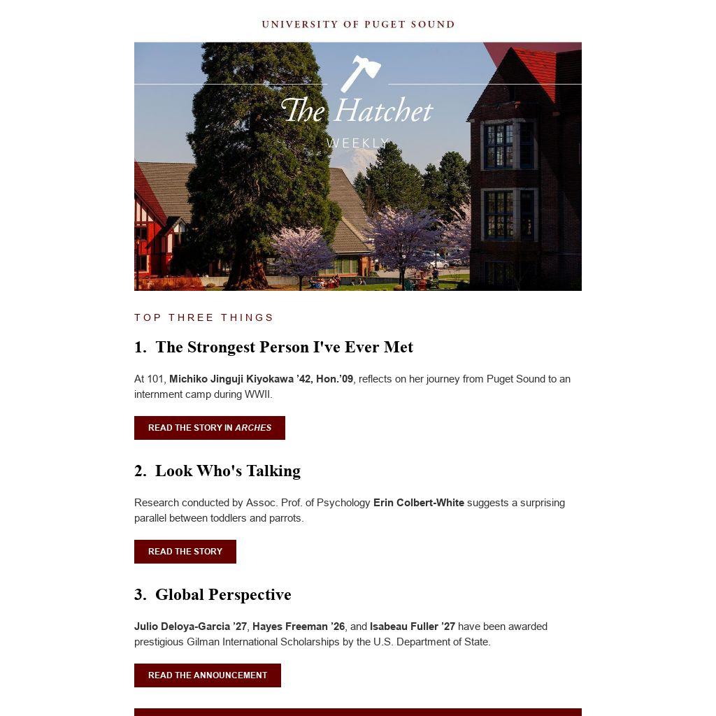 Do you know an outstanding Logger who has made a lasting contribution to their profession, community, or here at Puget Sound? Nominations are now open for the 2026 Distinguished Alumni Awards. The Alumni Council presents awards in four categories: Professional Achievement, Service to the Community, Service to Puget Sound, and Young Logger Service. The deadline to submit a nomination is August 1, 2025.