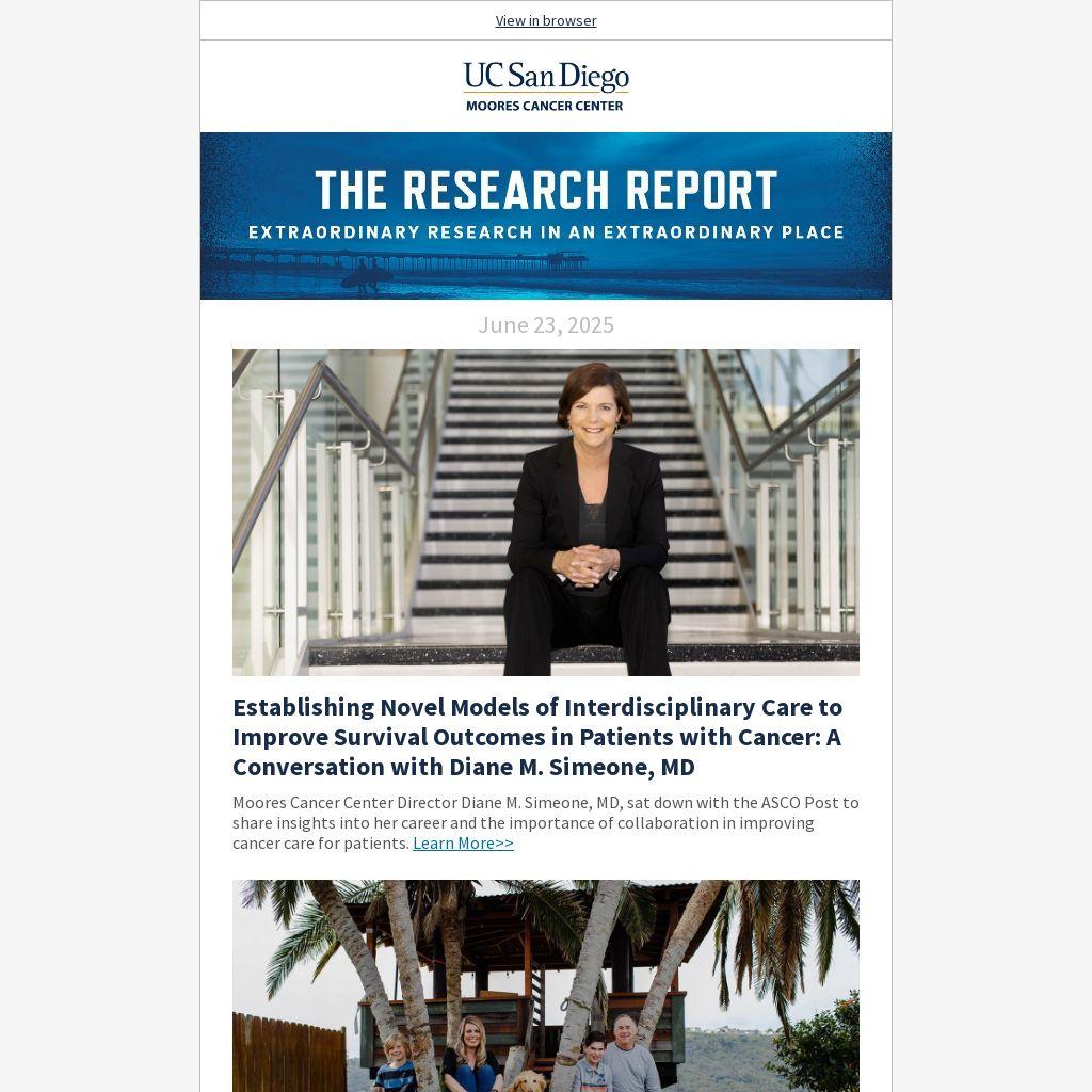 Moores Cancer Center Director Diane M. Simeone, MD, sat down with the ASCO Post to share insights into her career and the importance of collaboration in improving cancer care for patients. Learn More>>