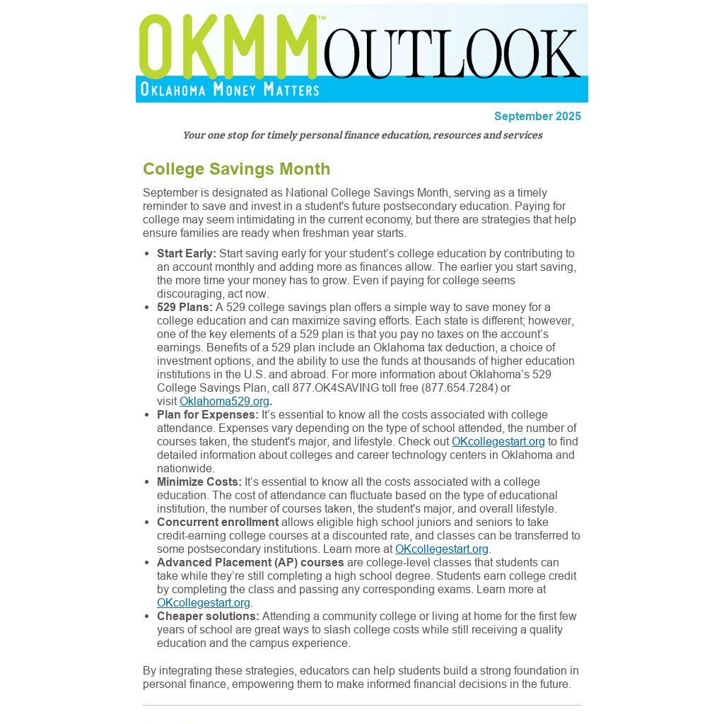 Check out the September edition of Financial Friday, Oklahoma Money Matters' online personal finance newsletter; this month we’re answering a question about coping with the stress and financial obligations of starting college.