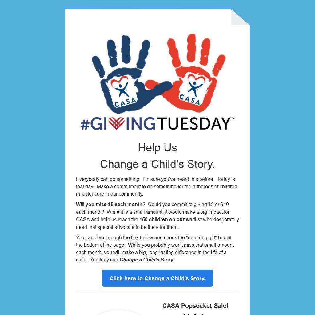 Will you miss $5 each month? Could you commit to giving $5 or $10 each month? While it is a small amount, it would make a big impact for CASA and help us reach the 150 children on our waitlist who desperately need that special advocate to be there for them.