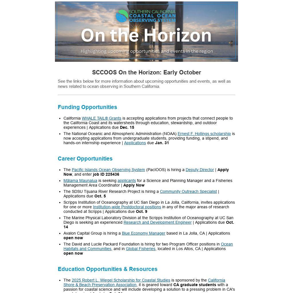 SCCOOS On the Horizon: Early October |