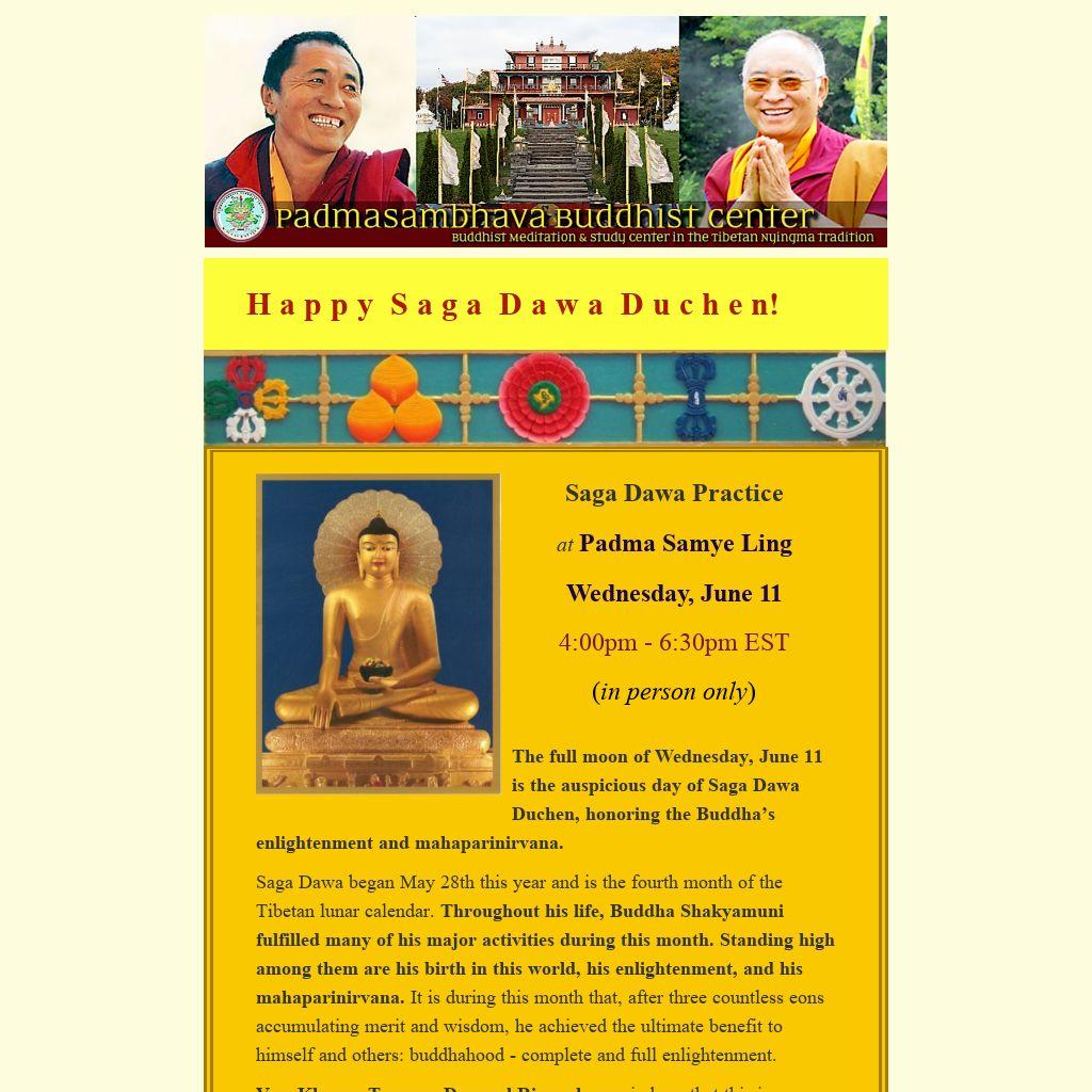 The full moon of Wednesday, June 11 is the auspicious day of Saga Dawa Duchen, honoring the Buddha’s enlightenment and mahaparinirvana.