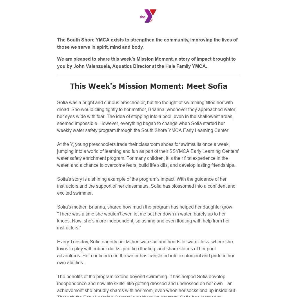 Sofia was a bright and curious preschooler, but the thought of swimming filled her with dread. She would cling tightly to her mother, Brianna, whenever they approached water, her eyes wide with fear. The idea of stepping into a pool, even in the shallowest areas, seemed impossible. However, everything began to change when Sofia started her weekly water safety program through the South Shore YMCA Early Learning Center.