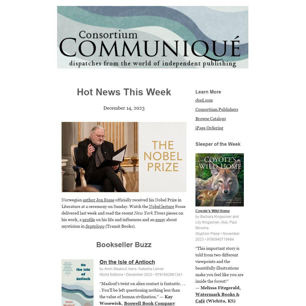 With year-end lists rolling in, we’re keeping tabs on books featured from Consortium publishers. Browse all 2023 coverage highlights, and check out what’s new this week: