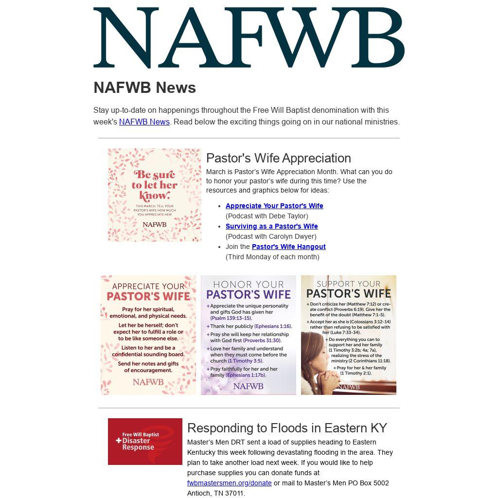 Stay up-to-date on happenings throughout the Free Will Baptist denomination with this week's NAFWB News. Read below the exciting things going on in our national ministries.