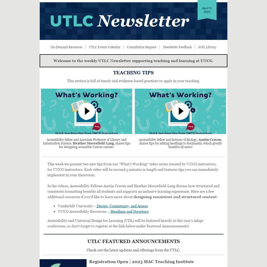Welcome to the weekly UTLC Newsletter supporting teaching and learning at UNCG.