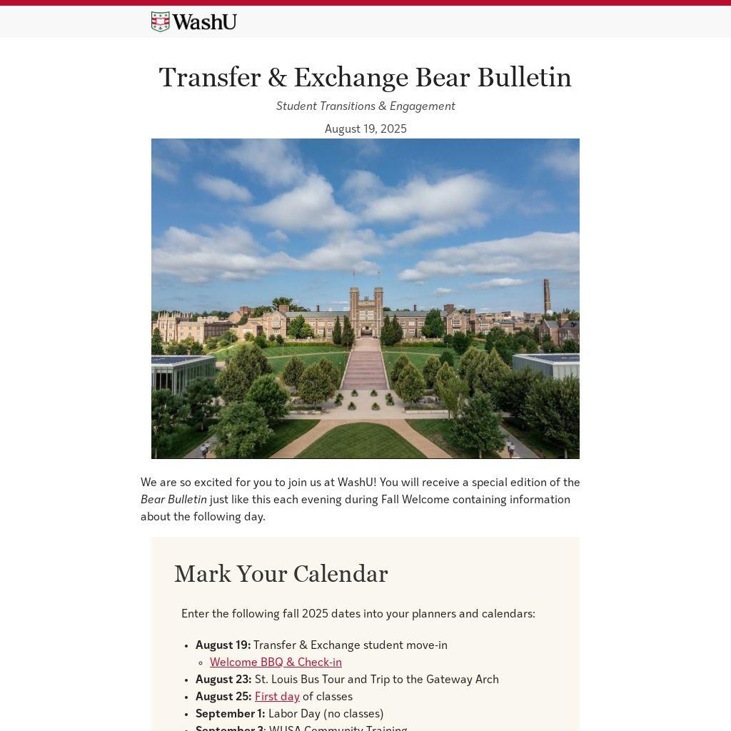 We are very excited to welcome you to the WashU community!