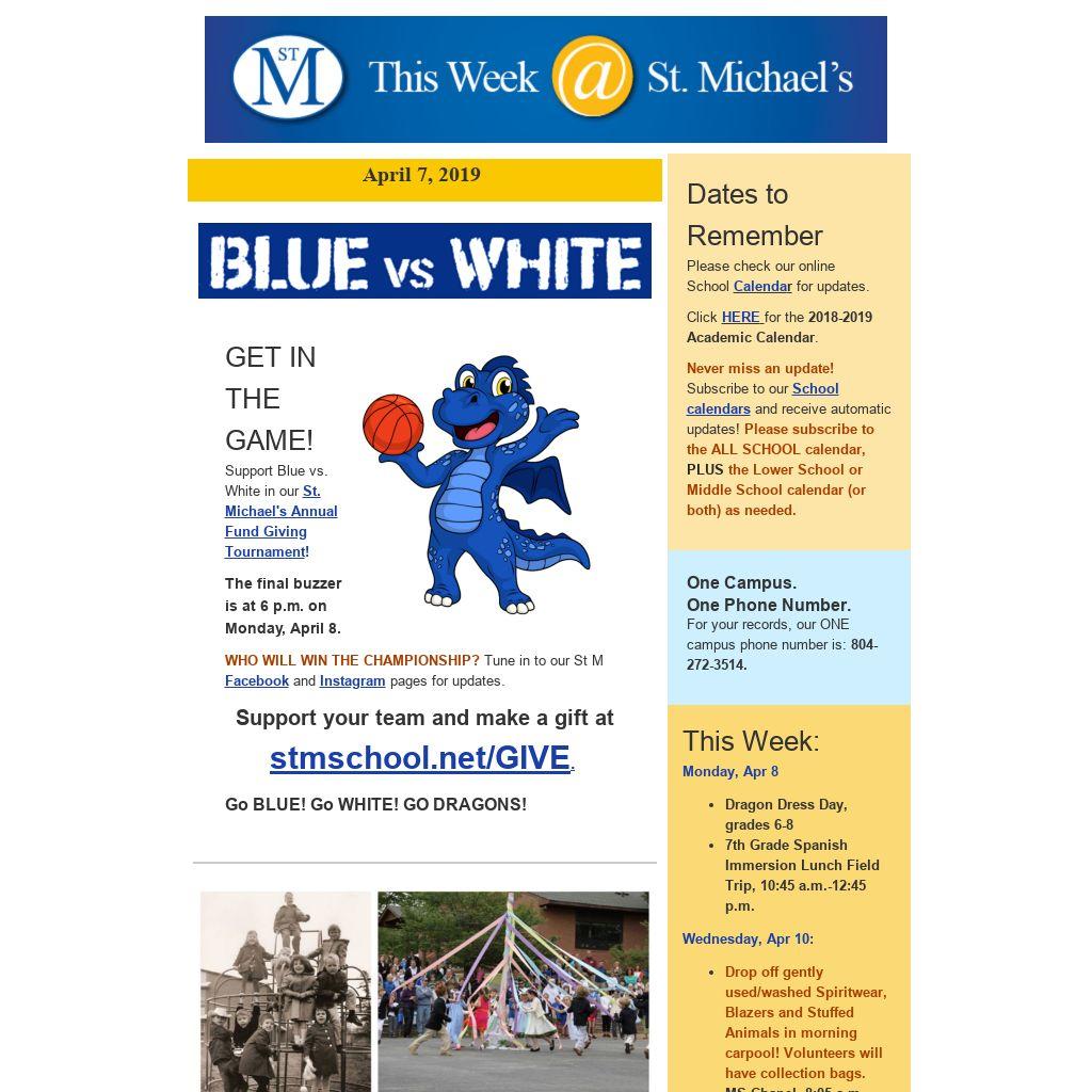 Current and past issues of "This Week at St. Michael's" are now archived on our website under " News and Events," as well as under " Community."