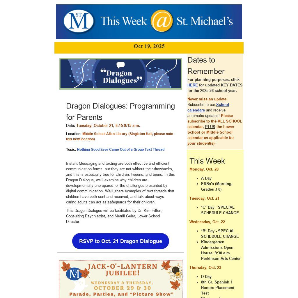 Current and past issues of "This Week at St. Michael's" are now archived on our website under "News and Events," as well as under "Community."