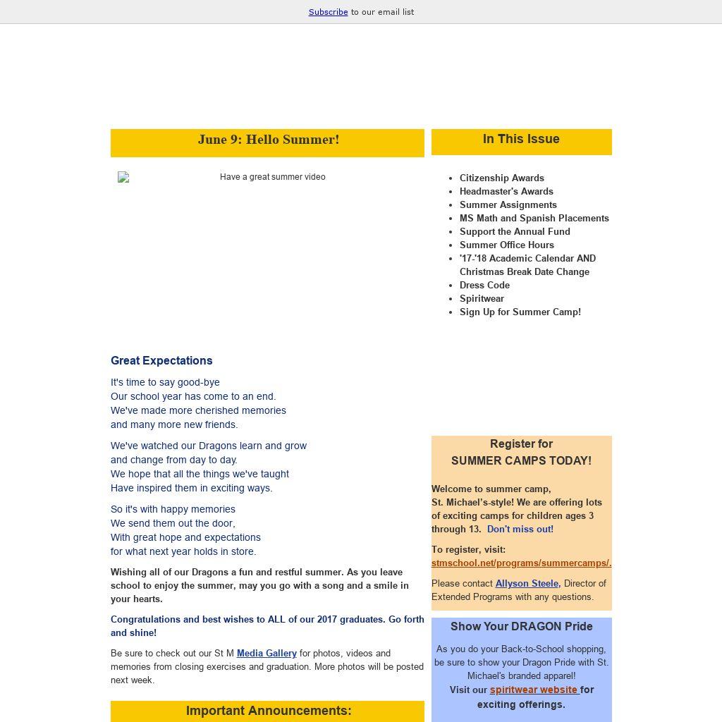 The St. Michael's Citizenship Award honors two students in each grade for outstanding achievement in social and academic endeavors. This year's recipients are: