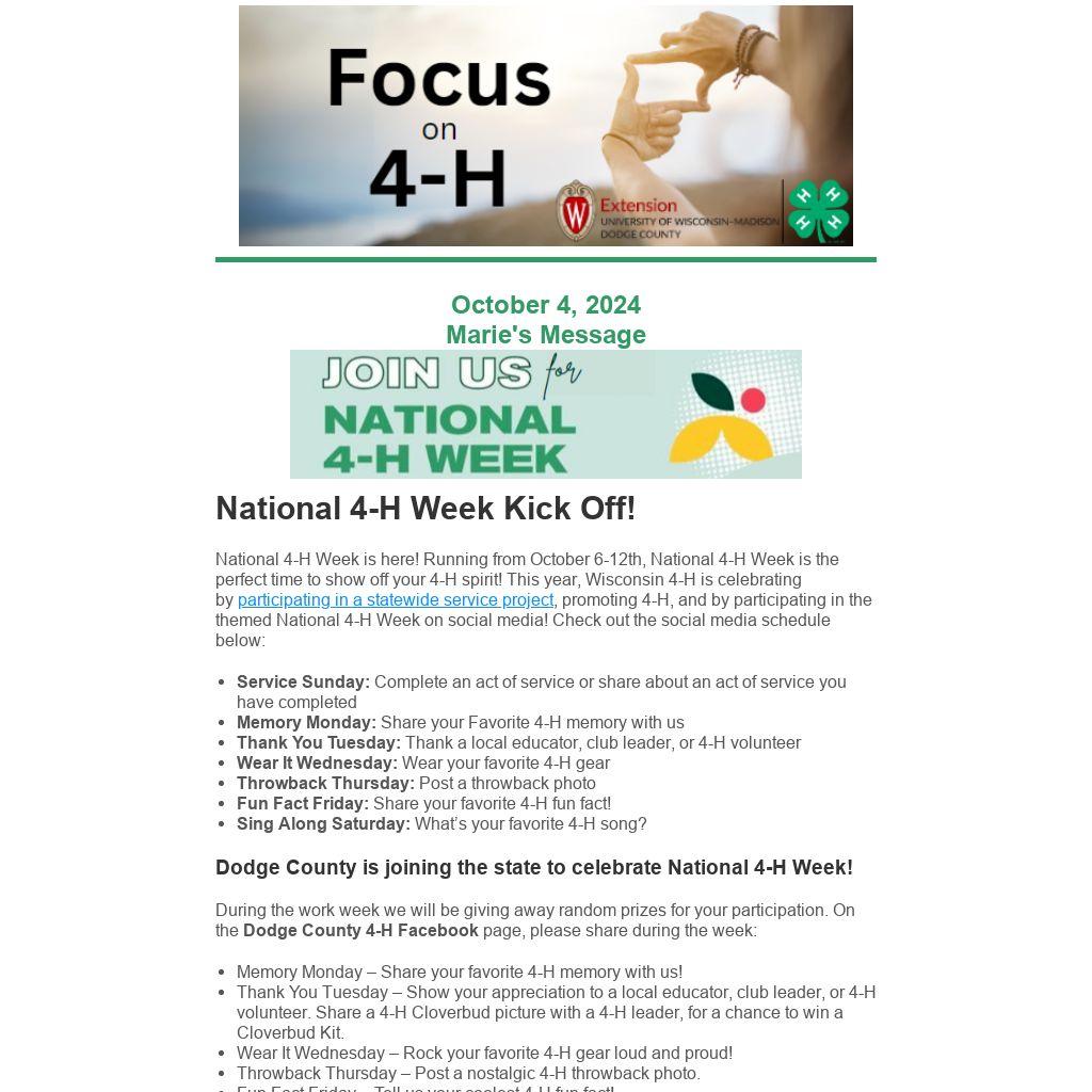 Dodge County is joining the state to celebrate National 4-H Week! |