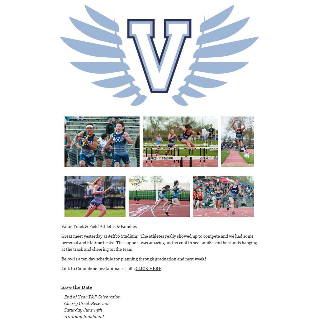 *Distance and Throws schedule will be sent by Coach Rainsberger and Coach Moore!