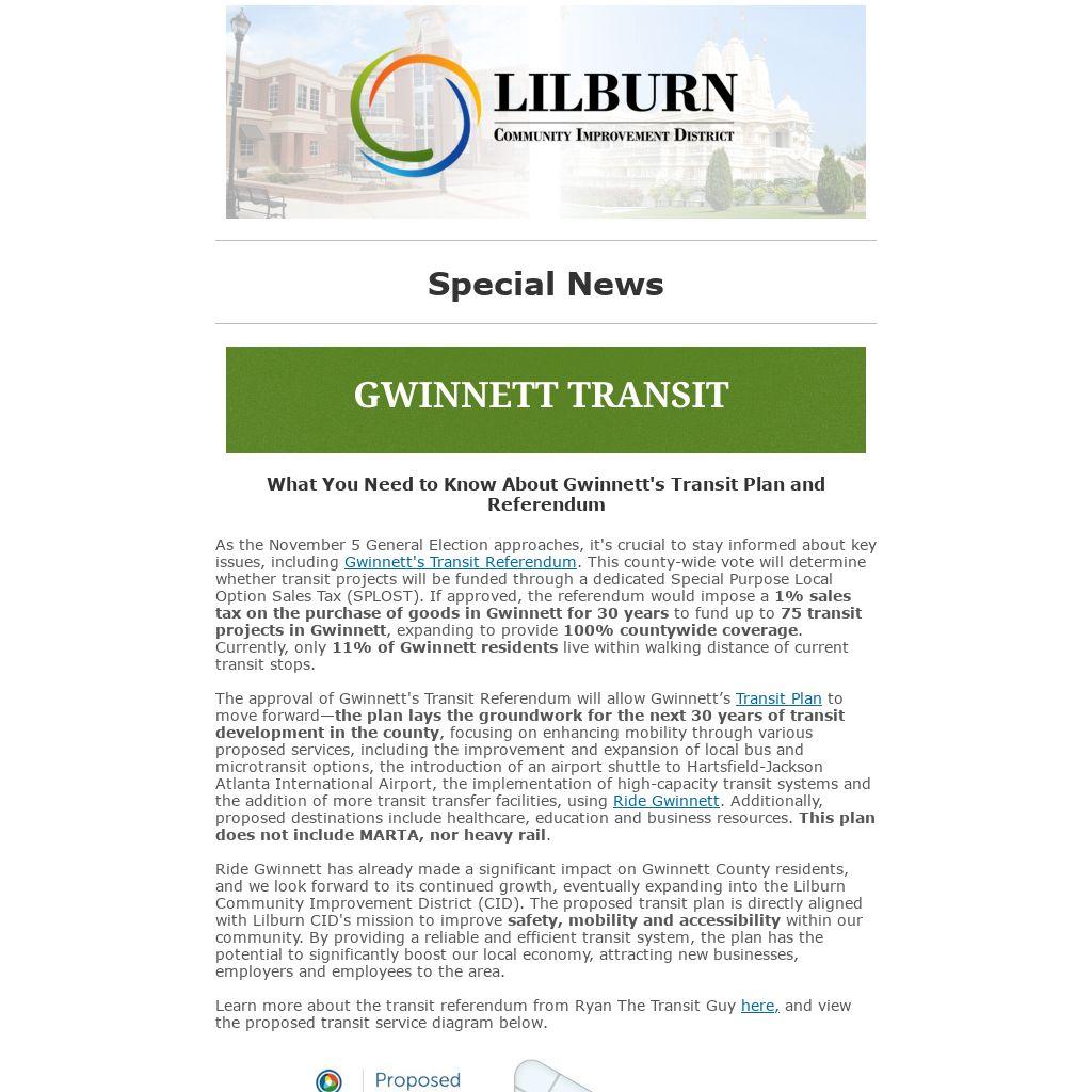 Ride Gwinnett has already made a significant impact on Gwinnett County residents, and we look forward to its continued growth, eventually expanding into the Lilburn Community Improvement District (CID). The proposed transit plan is directly aligned with Lilburn CID's mission to improve safety, mobility and accessibility within our community. By providing a reliable and efficient transit system, the plan has the potential to significantly boost our local economy, attracting new businesses, employers and employees to the area.