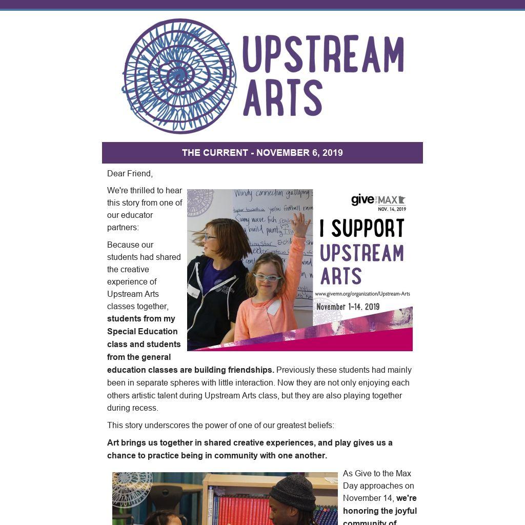 Because our students had shared the creative experience of Upstream Arts classes together, students from my Special Education class and students from the general education classes are building friendships. Previously these students had mainly been in separate spheres with little interaction. Now they are not only enjoying each others artistic talent during Upstream Arts class, but they are also playing together during recess.