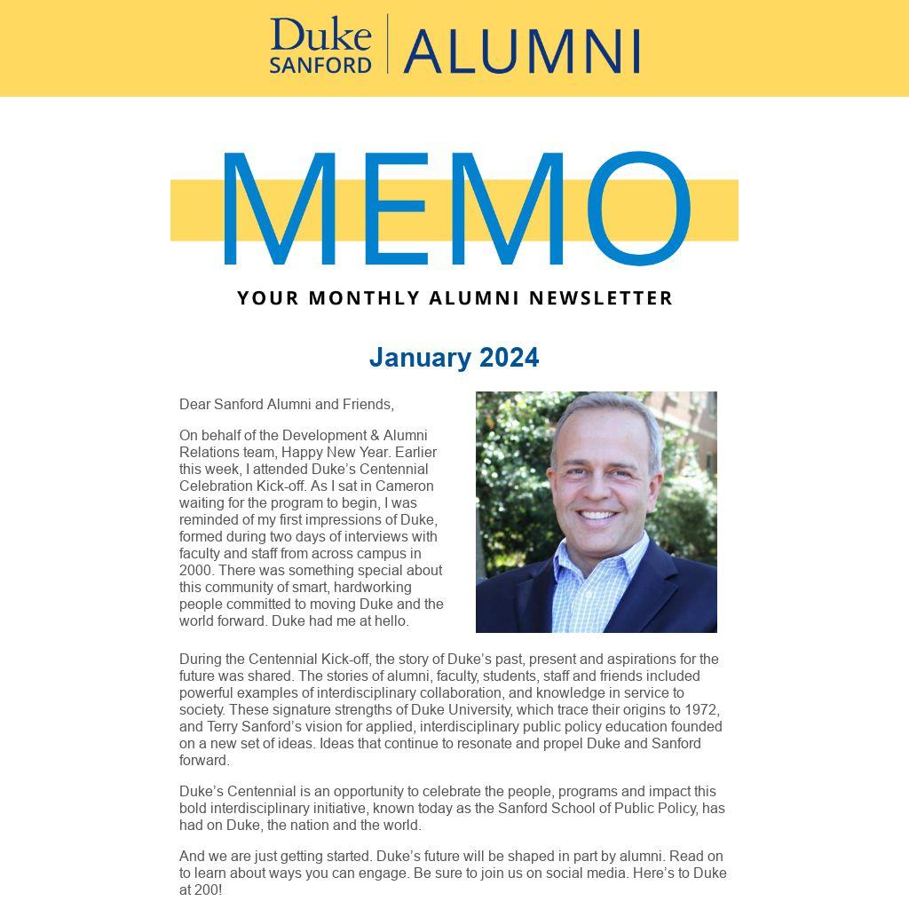 To share your wishes or an unforgettable moment from your memo experience at Duke Sanford, please click the link below. We will select two alumni who participate to receive a Sanford swag bag.