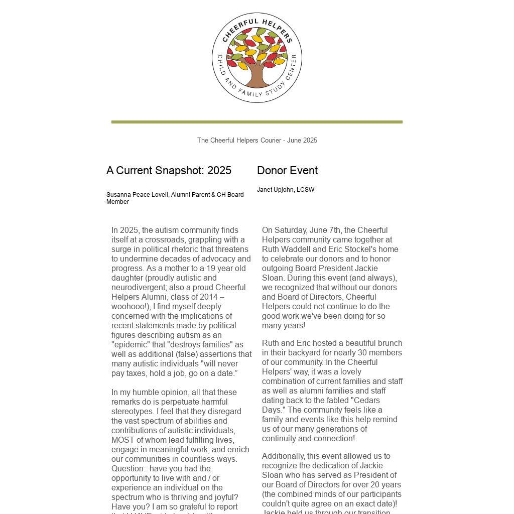 In 2025, the autism community finds itself at a crossroads, grappling with a surge in political rhetoric that threatens to undermine decades of advocacy and progress. As a mother to a 19 year old daughter (proudly autistic and neurodivergent; also a proud Cheerful Helpers Alumni, class of 2014 – woohooo!), I find myself deeply concerned with the implications of recent statements made by political figures describing autism as an "epidemic" that "destroys families" as well as additional (false) assertions that many autistic individuals "will never pay taxes, hold a job, go on a date.”