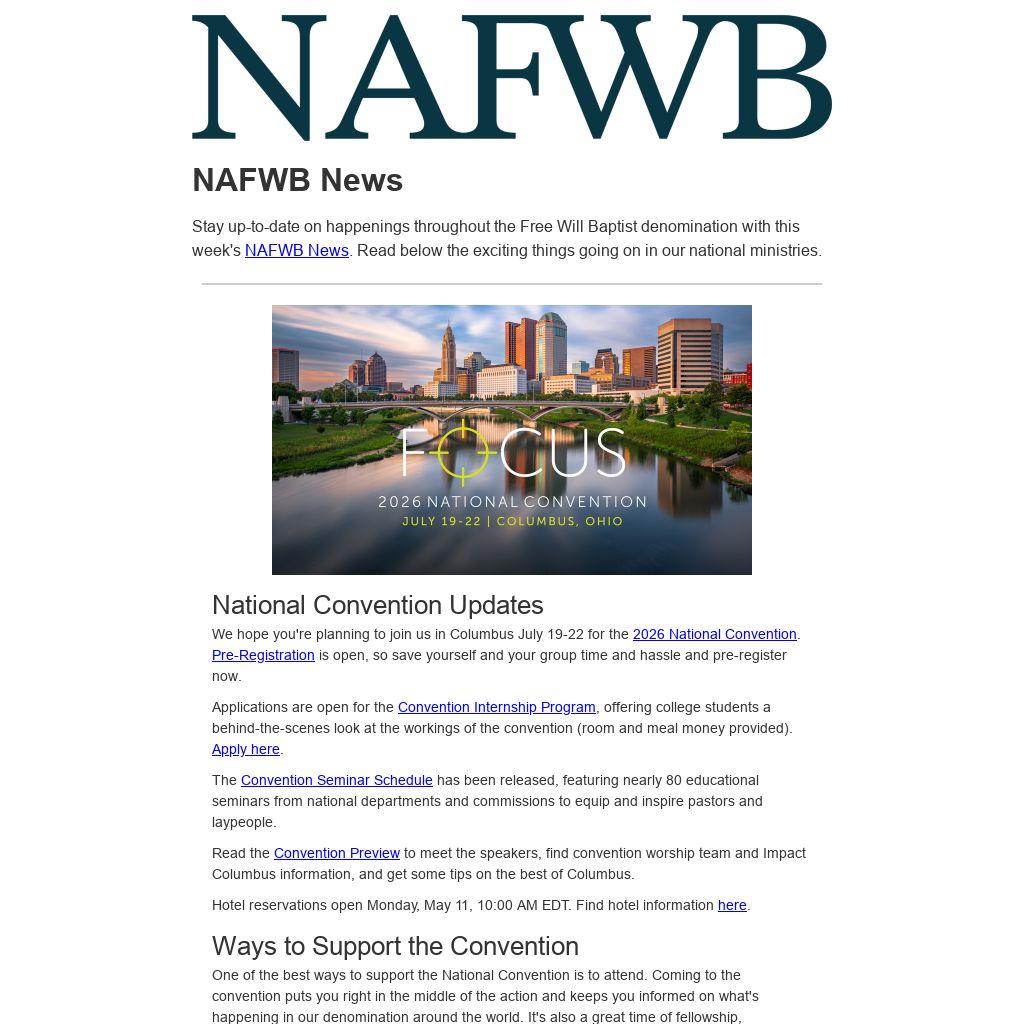 Stay up-to-date on happenings throughout the Free Will Baptist denomination with this week's NAFWB News. Read below the exciting things going on in our national ministries.