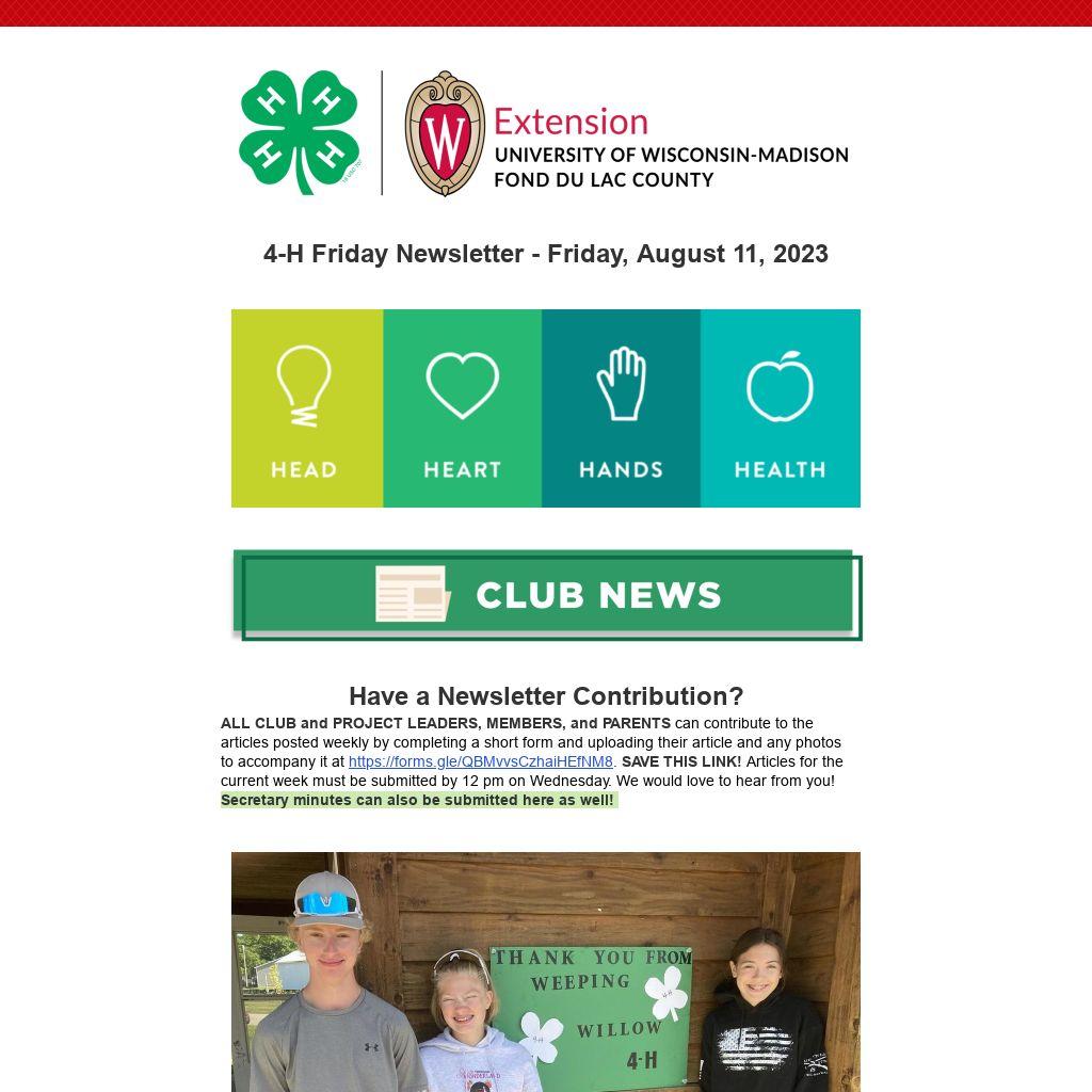 4-H Friday Newsletter - Friday, August 11, 2023