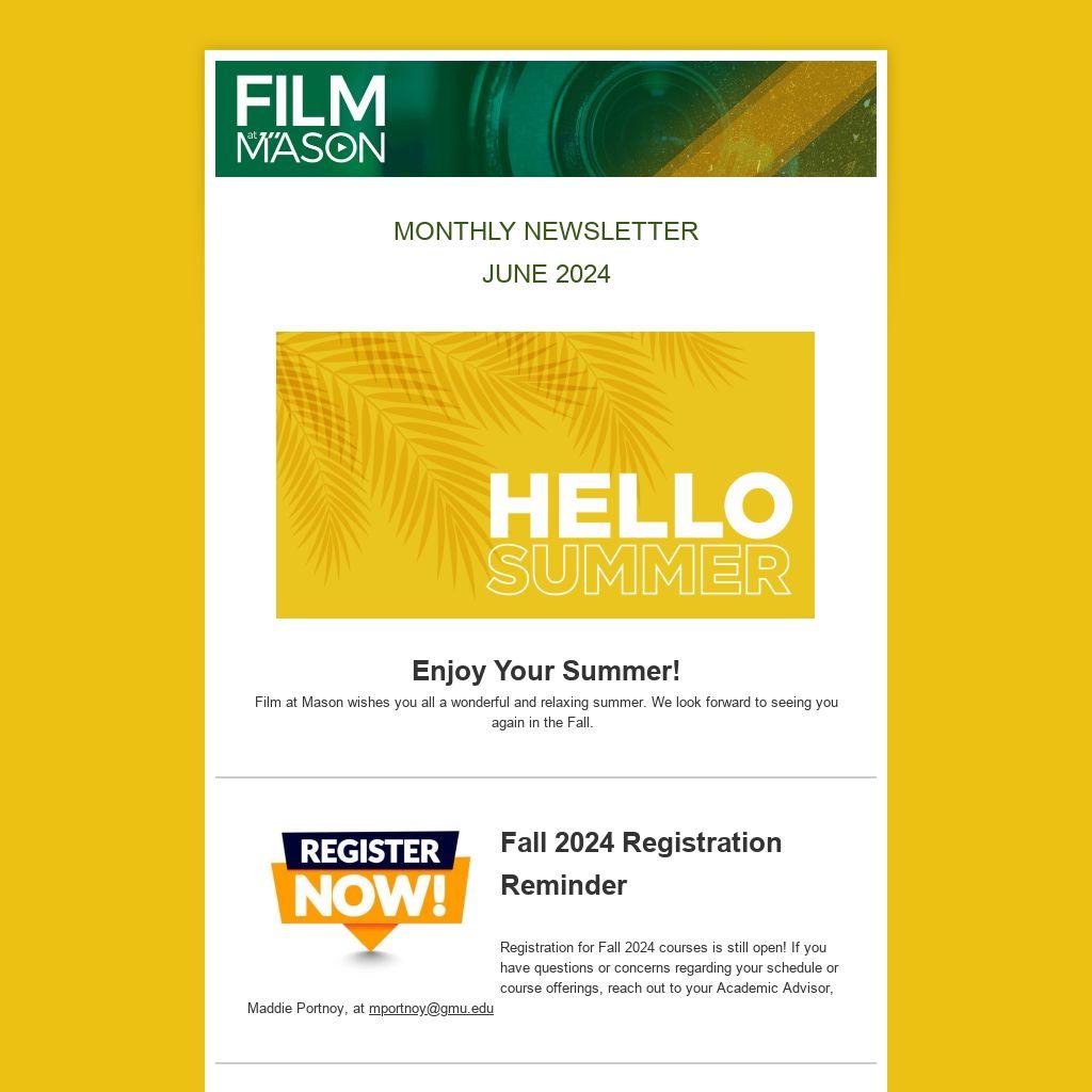 Film at Mason wishes you all a wonderful and relaxing summer. We look forward to seeing you again in the Fall.