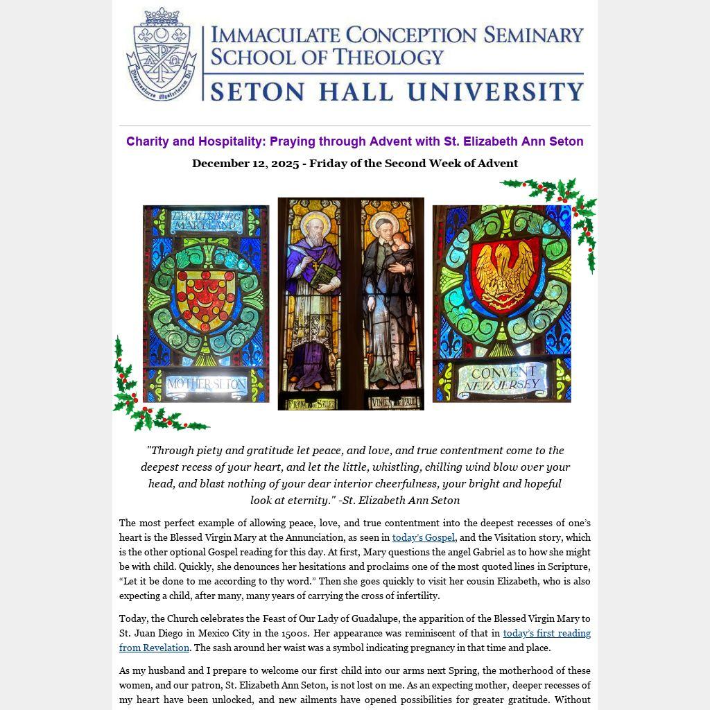 As my husband and I prepare to welcome our first child into our arms next Spring, the motherhood of these women, and our patron, St. Elizabeth Ann Seton, is not lost on me. As an expecting mother, deeper recesses of my heart have been unlocked, and new ailments have opened possibilities for greater gratitude. Without glossing over the hardships of pregnancy and motherhood, I seek to offer my suffering for others as often as I can (which may be only 10% of the time, in full transparency). Offering the round-the-clock nausea for patients undergoing chemotherapy or the sciatica pain for those in chronic pain allows me to enter into their journeys and invite them into mine as well. My husband and I have had to cancel plans with family and friends when I am unwell; the journey can be isolating and depleting. The loved ones who consistently check in on me or have helped in a multitude of ways stir extra gratitude. After all, true hospitality is in our Eucharistic hearts.