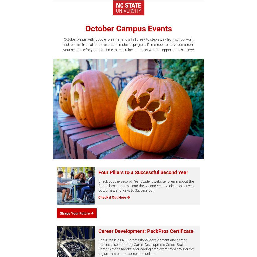 October brings with it cooler weather and a fall break to step away from schoolwork and recover from all those tests and midterm projects. Remember to carve out time in your schedule for you. Take time to rest, relax and reset with the opportunities below!