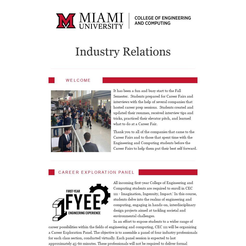 Thank you to all of the companies that came to the Career Fairs and to those that spent time with the Engineering and Computing students before the Career Fairs to help them put their best self forward.