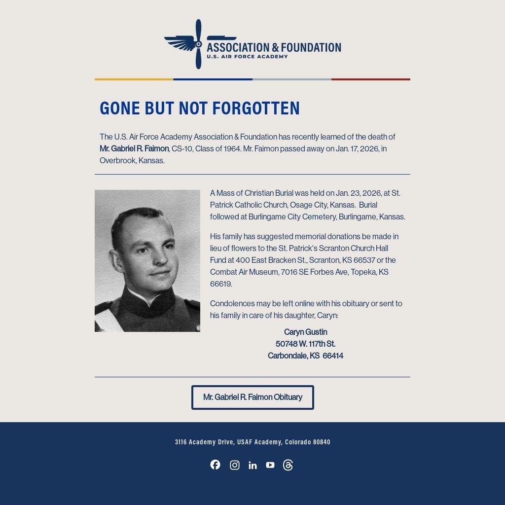 A Mass of Christian Burial was held on Jan. 23, 2026, at St. Patrick Catholic Church, Osage City, Kansas. Burial followed at Burlingame City Cemetery, Burlingame, Kansas.