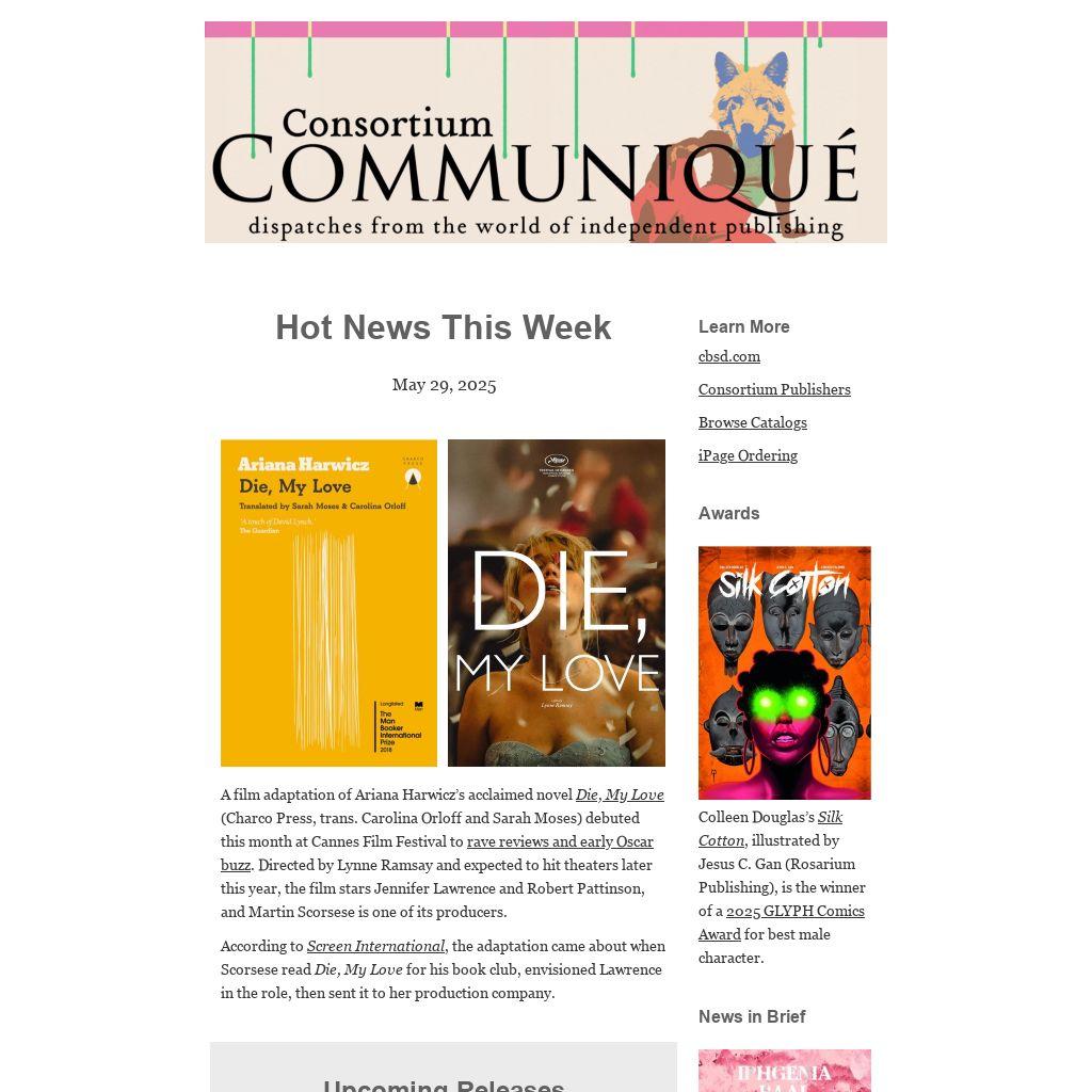 | A film adaptation of Ariana Harwicz’s acclaimed novel Die, My Love (Charco Press, trans. Carolina Orloff and Sarah Moses) debuted this month at Cannes Film Festival to rave reviews and early Oscar buzz. Directed by Lynne Ramsay and expected to hit theaters later this year, the film stars Jennifer Lawrence and Robert Pattinson, and Martin Scorsese is one of its producers.