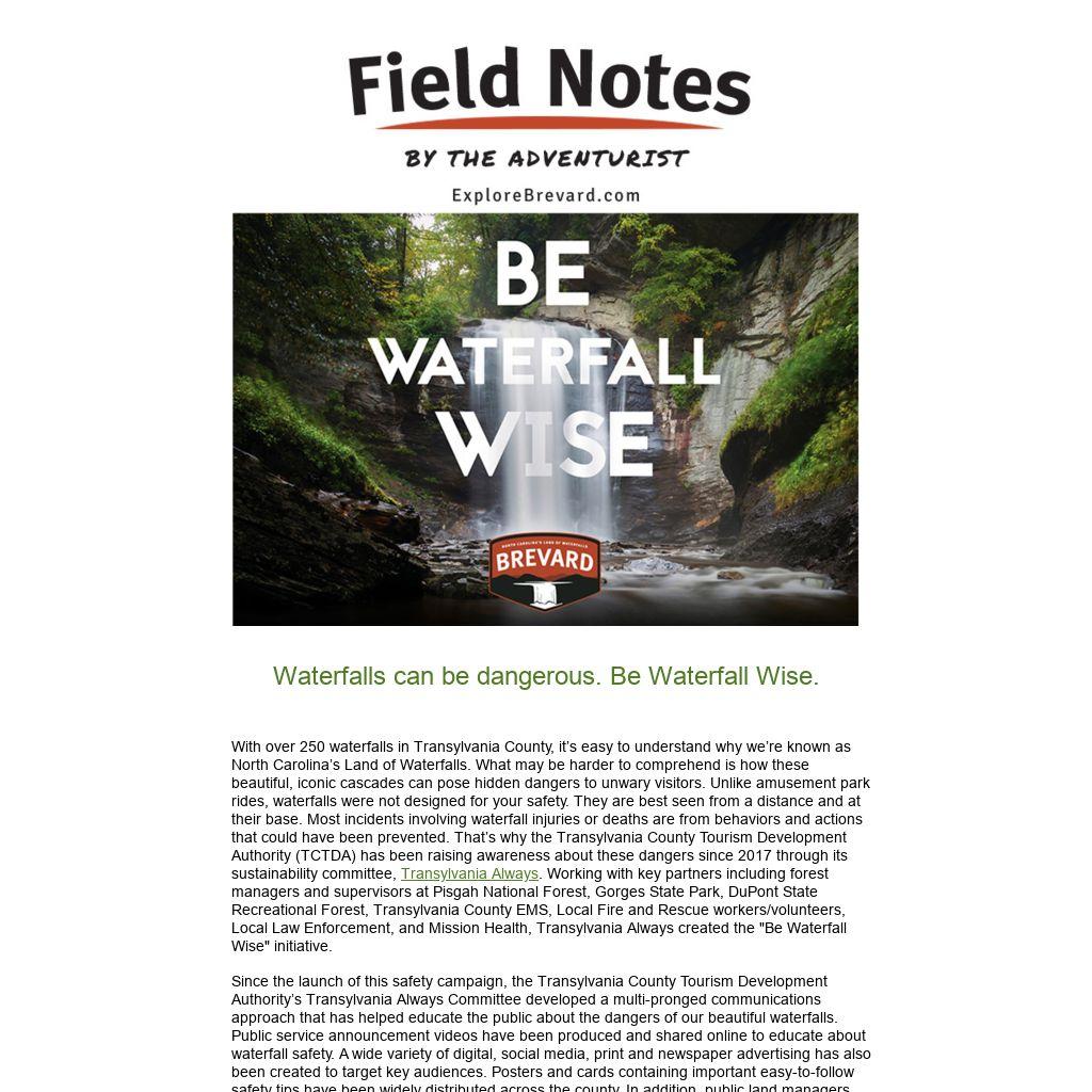 Local Law Enforcement, and Mission Health, Transylvania Always created the "Be Waterfall Wise" initiative.