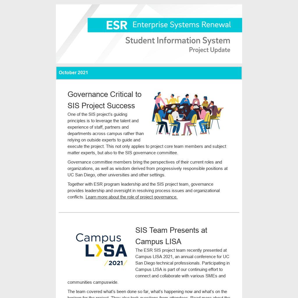 Abbreviations used above: Enterprise Systems Renewal (ESR), Student Information System (SIS), Enterprise Identity Management (EIM), Activity Hub (AH), Financial Information System (FIS).
