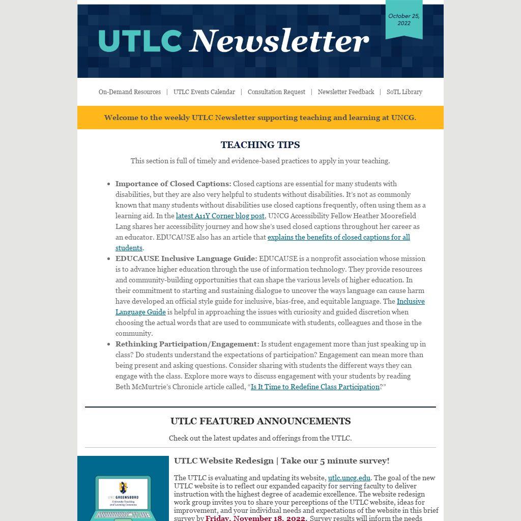 Welcome to the weekly UTLC Newsletter supporting teaching and learning at UNCG.