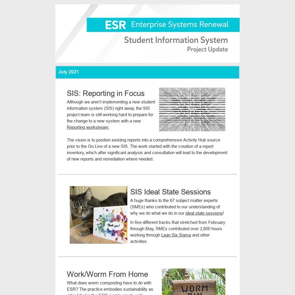 We highlight it here because one SIS project team member is now sharing her Work From Home location with composting worms. As she searched for deeper meaning to this development in her home life, she was happy to see the connection to the "renewal" part of Enterprise Systems Renewal.
