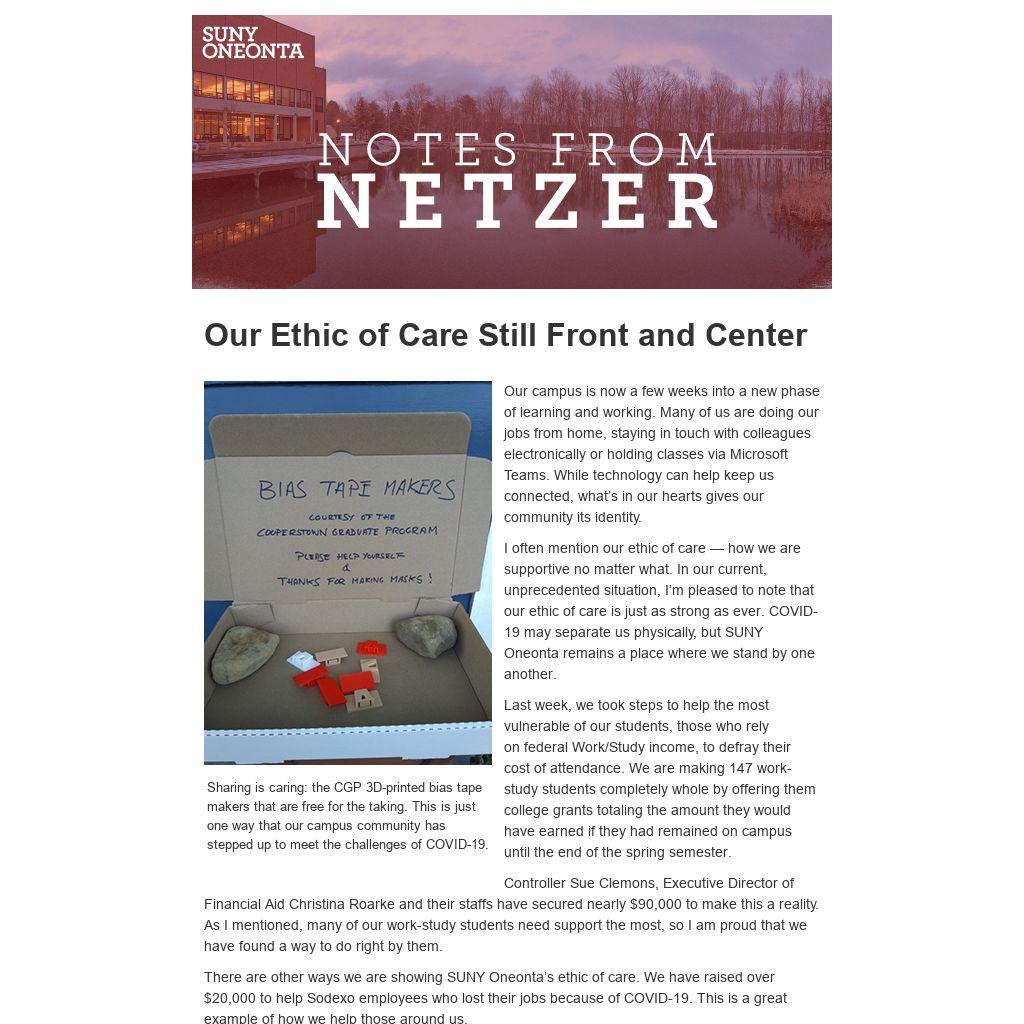 And there is more good news. In the next two weeks, SUNY Oneonta will receive assistance from the CARES Act, which is a mechanism for the U.S. Department of Education to distribute $14 billion of the federal stimulus to colleges and universities across the nation.
