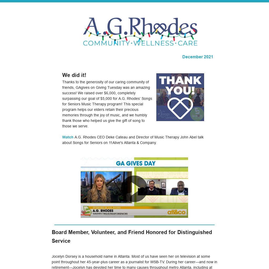We also congratulate Patrick Kimono, Restorative CNA Care Partner at A.G. Rhodes Cobb, for winning the "Unsung Heroes Award" at the Atlanta Regional Commission State of the Region event.