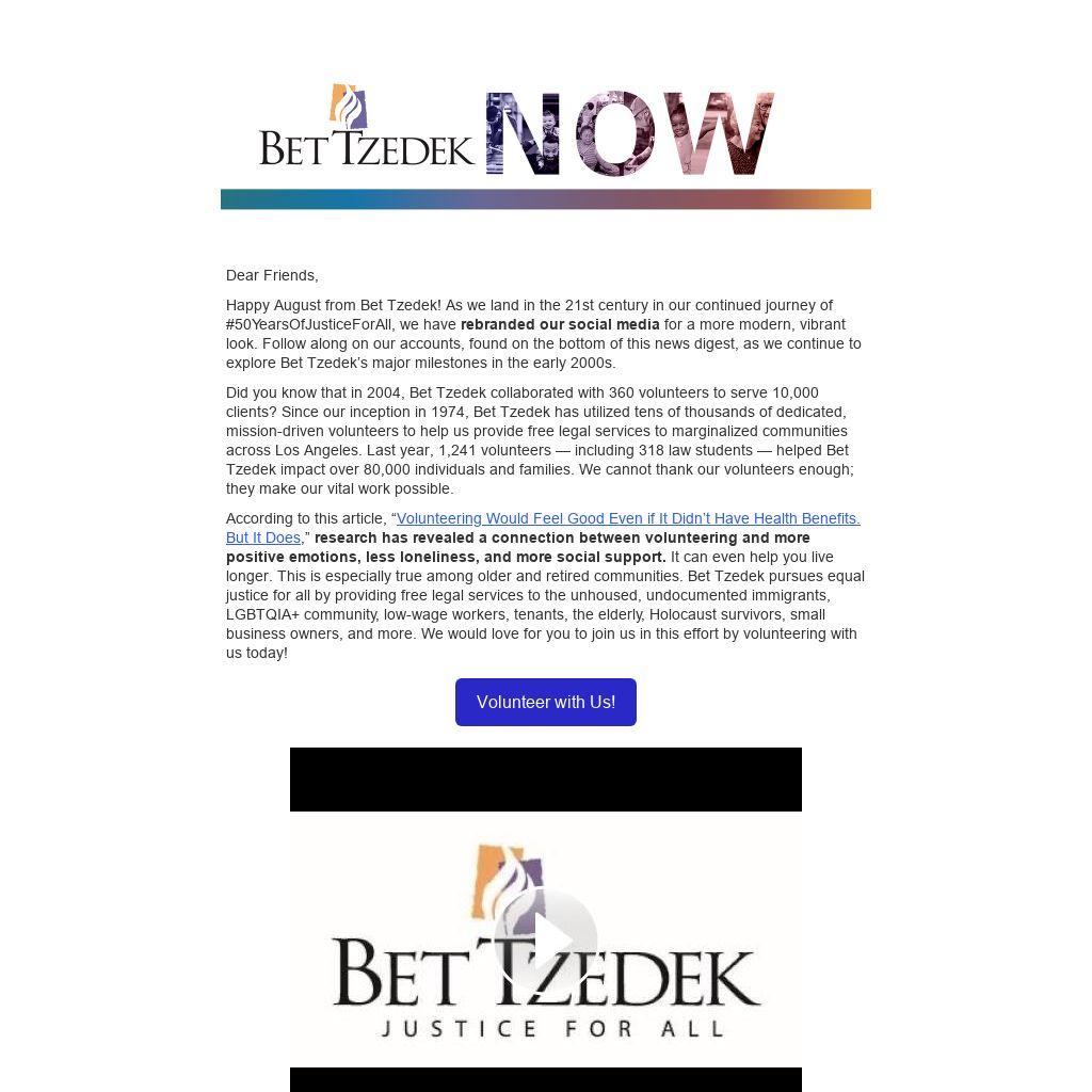 Happy August from Bet Tzedek! As we land in the 21st century in our continued journey of #50YearsOfJusticeForAll, we have rebranded our social media for a more modern, vibrant look. Follow along on our accounts, found on the bottom of this news digest, as we continue to explore Bet Tzedek’s major milestones in the early 2000s.