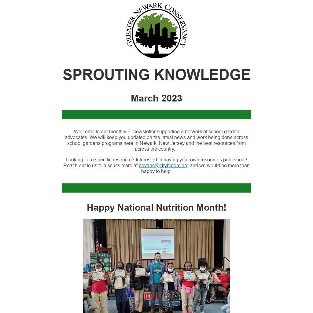 Welcome to our monthly E-Newsletter supporting a network of school garden advocates. We will keep you updated on the latest news and work being done across school gardens programs here in Newark, New Jersey and the best resources from across the country.