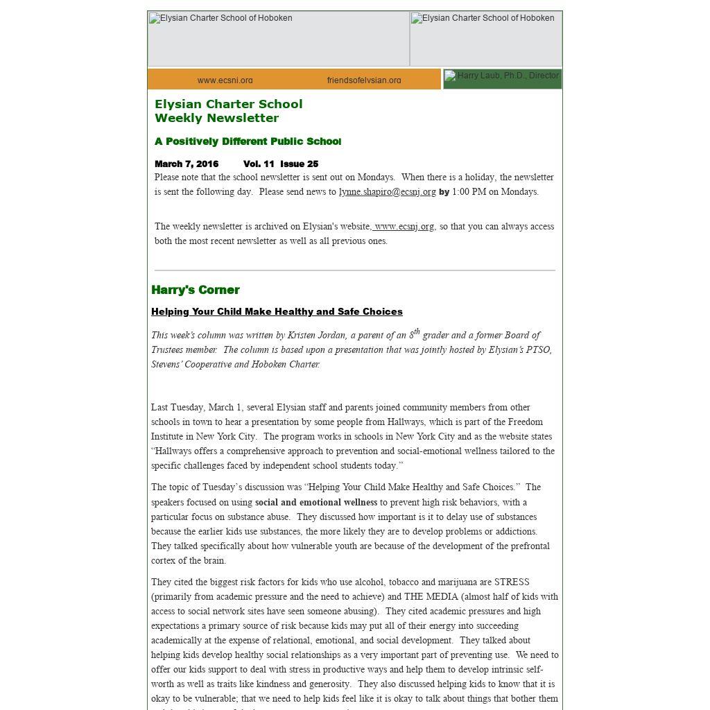 Last Tuesday, March 1, several Elysian staff and parents joined community members from other schools in town to hear a presentation by some people from Hallways, which is part of the Freedom Institute in New York City. The program works in schools in New York City and as the website states “Hallways offers a comprehensive approach to prevention and social-emotional wellness tailored to the specific challenges faced by independent school students today.”