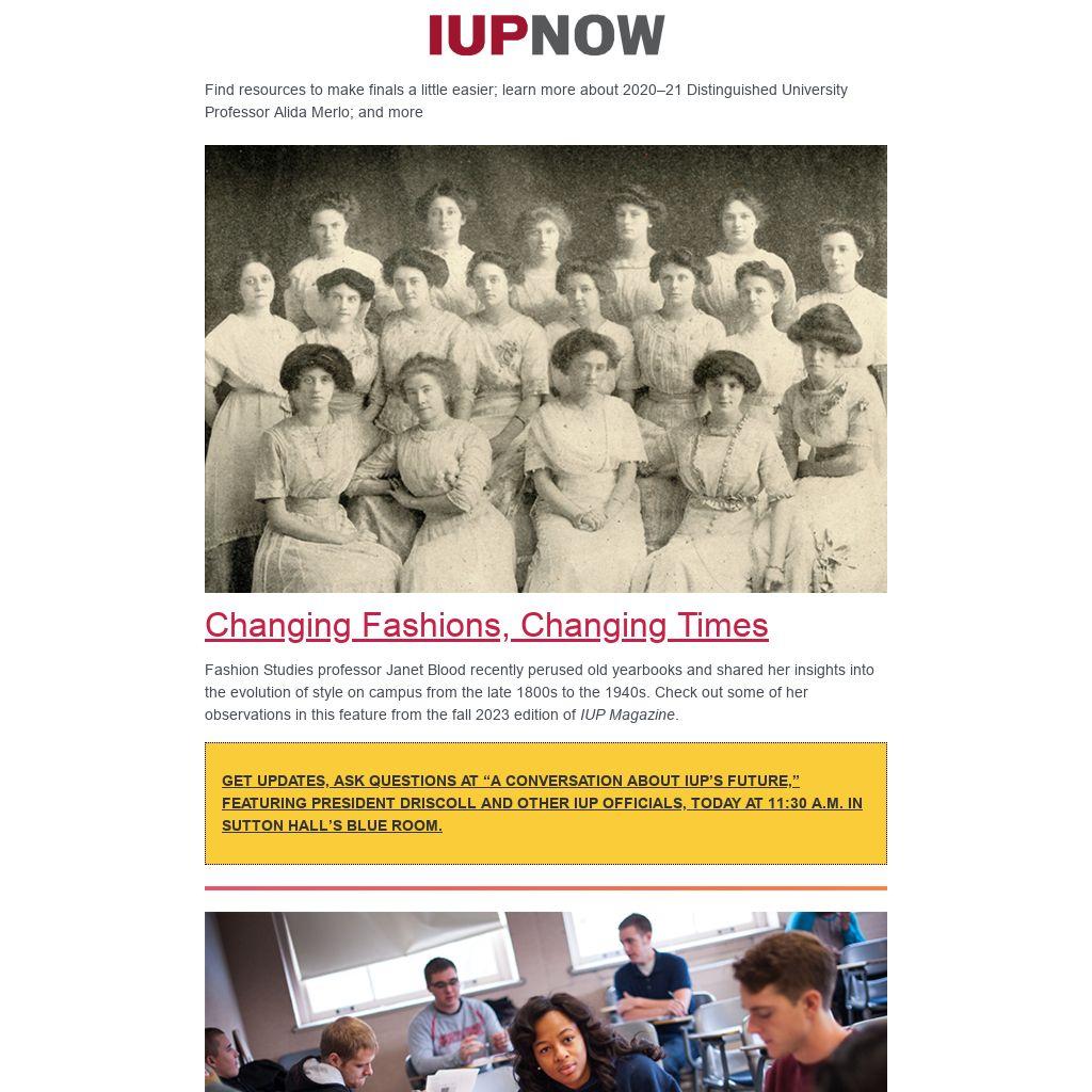 Fashion Studies professor Janet Blood recently perused old yearbooks and shared her insights into the evolution of style on campus from the late 1800s to the 1940s. Check out some of her observations in this feature from the fall 2023 edition of IUP Magazine.