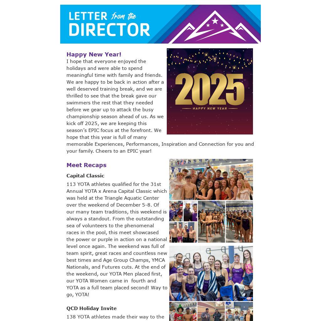 113 YOTA athletes qualified for the 31st Annual YOTA x Arena Capital Classic which was held at the Triangle Aquatic Center over the weekend of December 5-8. Of our many team traditions, this weekend is always a standout. From the outstanding sea of volunteers to the phenomenal races in the pool, this meet showcased the power or purple in action on a national level once again. The weekend was full of team spirit, great races and countless new best times and Age Group Champs, YMCA Nationals, and Futures cuts. At the end of the weekend, our YOTA Men placed first, our YOTA Women came in fourth and YOTA as a full team placed second! Way to go, YOTA!