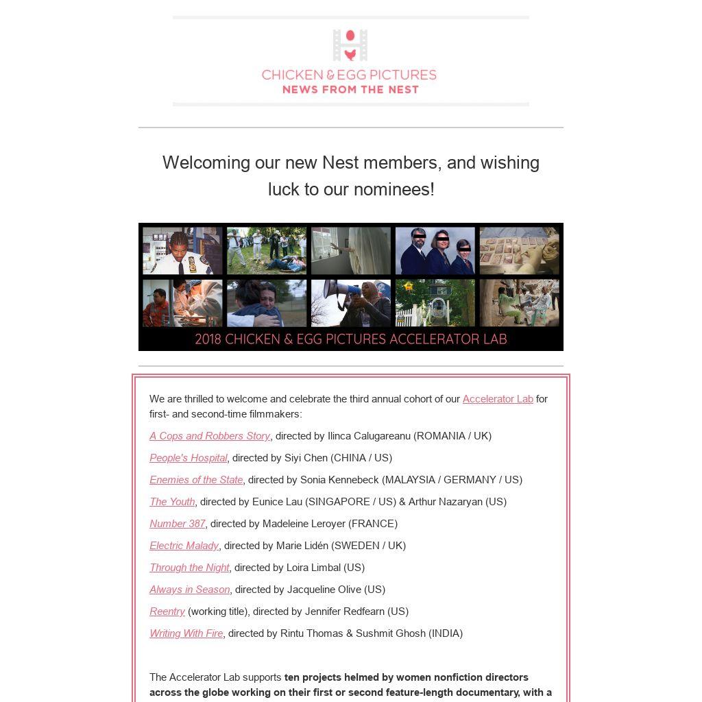 “Community-building is key to this program,” says Chicken & Egg Pictures Program Director Lucila Moctezuma. “While the Accelerator Lab for first- and second-time filmmakers certainly helps women filmmakers to enter the industry pipeline, it also provides them with a community of support that helps them to stay in the pipeline. The reality of being a film director is that it can often feel daunting and isolating. By explicitly encouraging peer-to-peer mentorship among our cohort, we provide emerging filmmakers with a chance to bond with and learn from one another, to help one another carve a space for themselves in the industry, and to equip them with the strength of a community they can rely on throughout their careers."