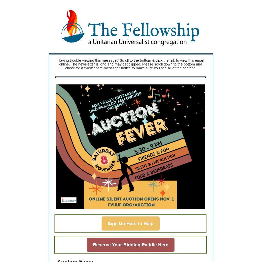 - November 8 - Fellowship 70th Anniversary Celebration - Celebrate our 70 years in 70's style at our Auction Fever LIVE auction!