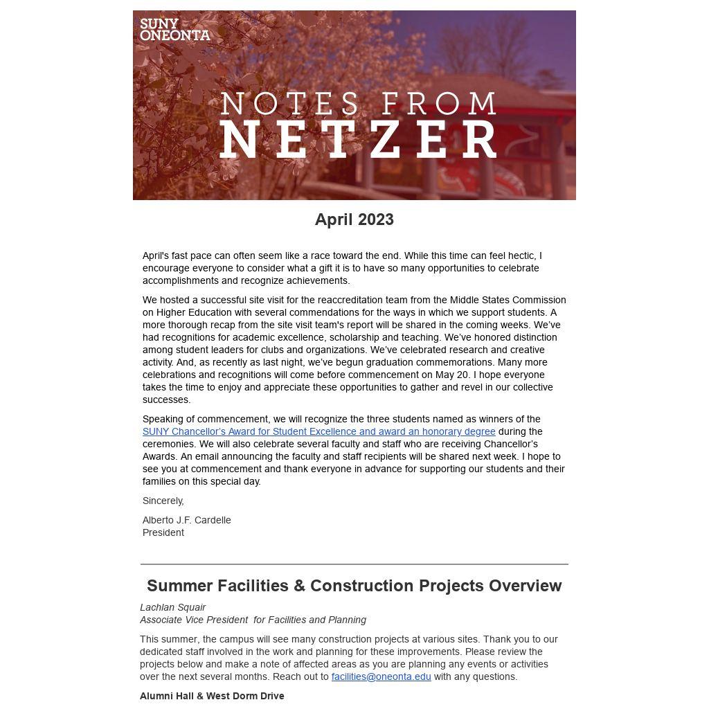 This summer, the campus will see many construction projects at various sites. Thank you to our dedicated staff involved in the work and planning for these improvements. Please review the projects below and make a note of affected areas as you are planning any events or activities over the next several months. Reach out to facilities@oneonta.edu with any questions.