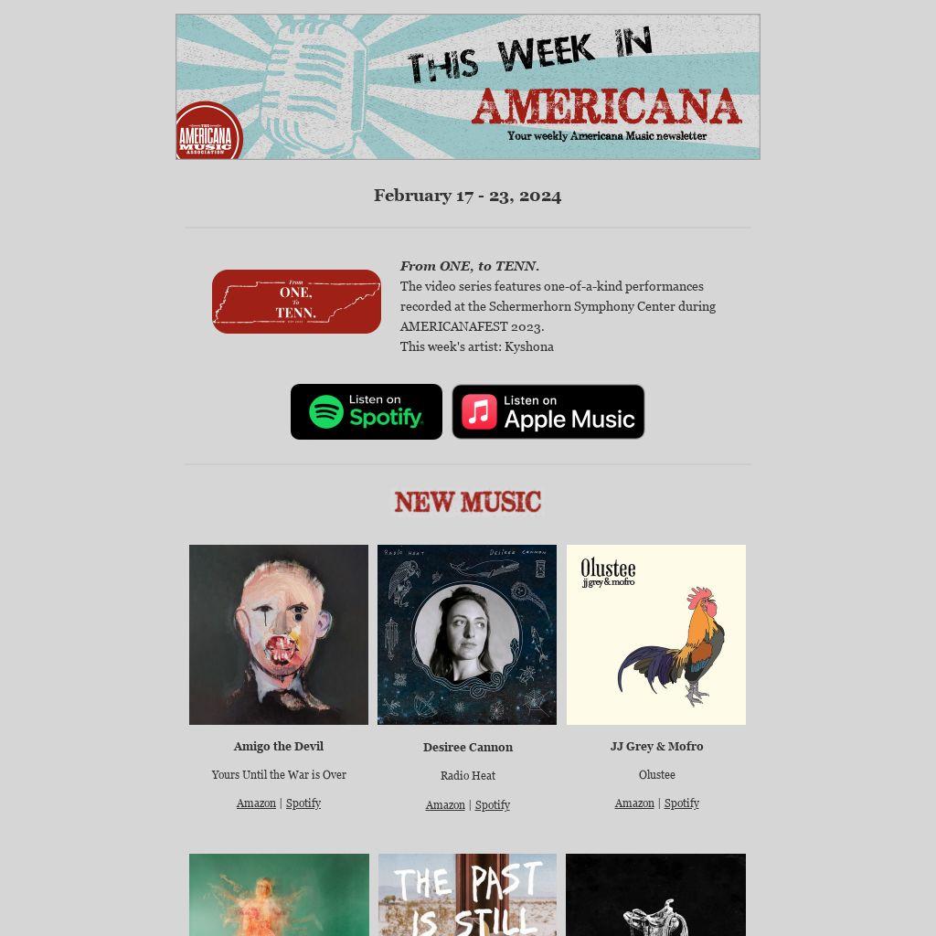Not interested in this email? Customize your email experience. Not interested in hearing from The Americana Music Association, AMERICANAFEST, or This Week in Americana anymore? Opt out using TrueRemove®.