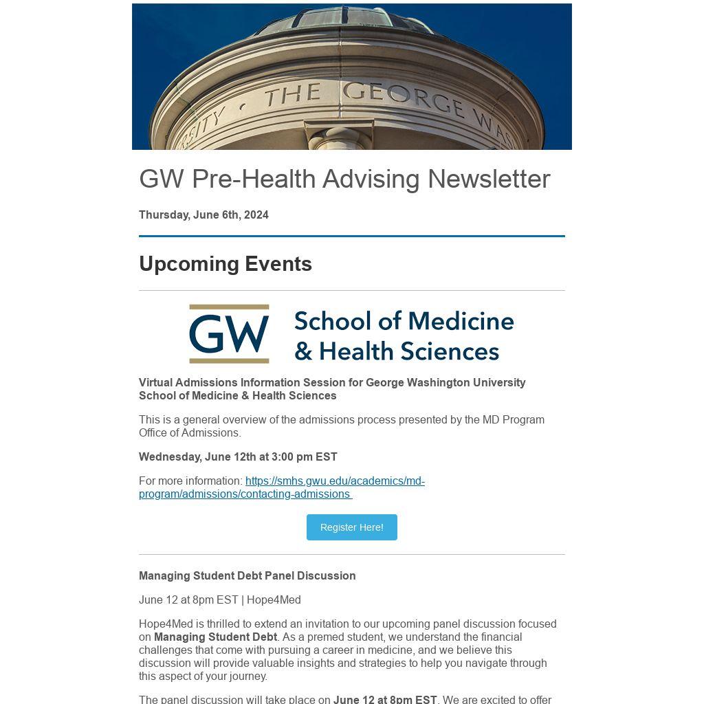 GW Pre-Health Advising Newsletter | Managing Student Debt Panel Discussion