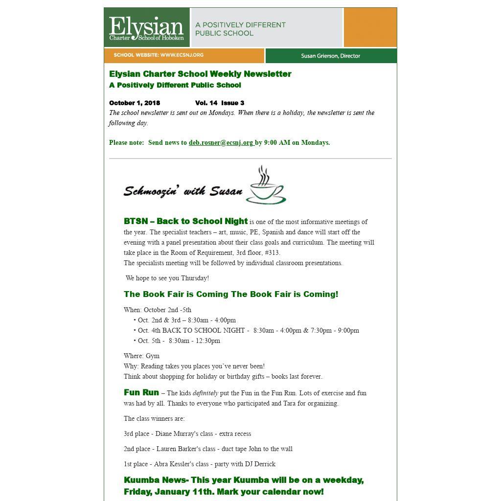 Elysian Charter School Weekly Newsletter