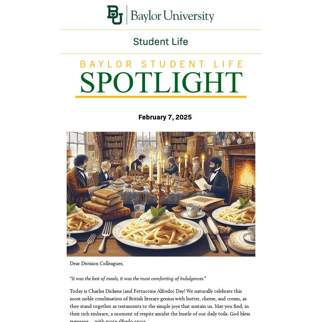 Staff Development Event "From Vision to Action: Collaboration for Baylor in Deeds" – Thursday, February 13. Our first event of the spring semester is at 10:30 a.m. in Cashion 506.